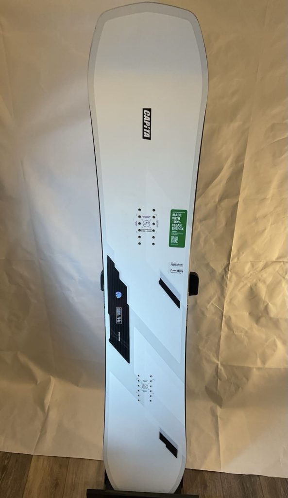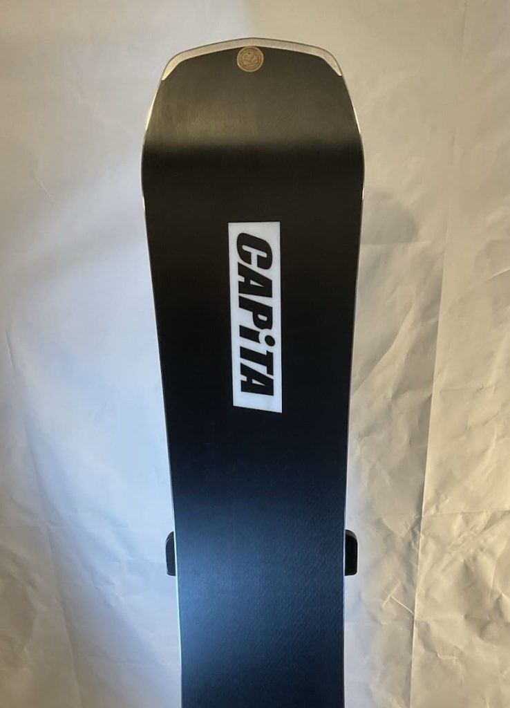 The flex is stiff, no sugarcoating that. They’ve given it a 6.5/10 – but it definitely feels significantly stiffer than the Super DOA. The board is built with CAPiTA’s lightweight core and carbon layup that keeps it surprisingly lively for how damp it rides. Edge hold is boosted by their “Death Grip” sidecut, which basically pinches in at the waist to bite harder on firm snow.